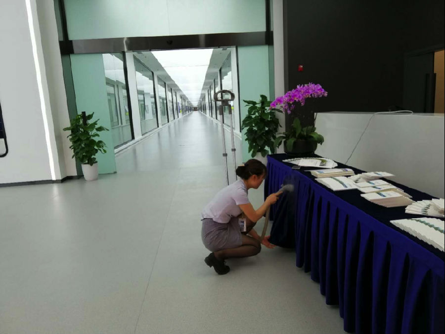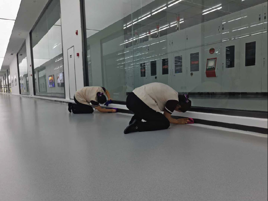 通宇物業(yè)工作人員對參觀(guān)通道進(jìn)行精細化清潔
