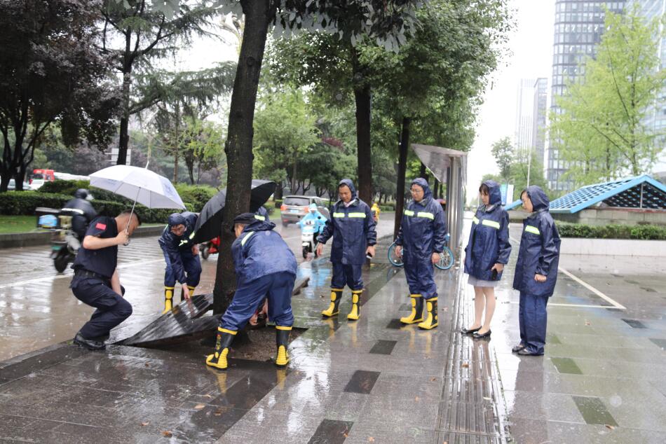 7月22日10時(shí)50分,成都市氣象臺發(fā)布暴雨黃色預警。通威國際中心地處本次強降雨覆蓋區,天府大道及天府二街積水嚴重,通威集團辦公室、成都通宇物業(yè)管理有限公司總經(jīng)辦、行政部及通威國際中心項目環(huán)境部、工程部、客服部、秩序部等部門(mén)負責人參與此次汛情檢查。