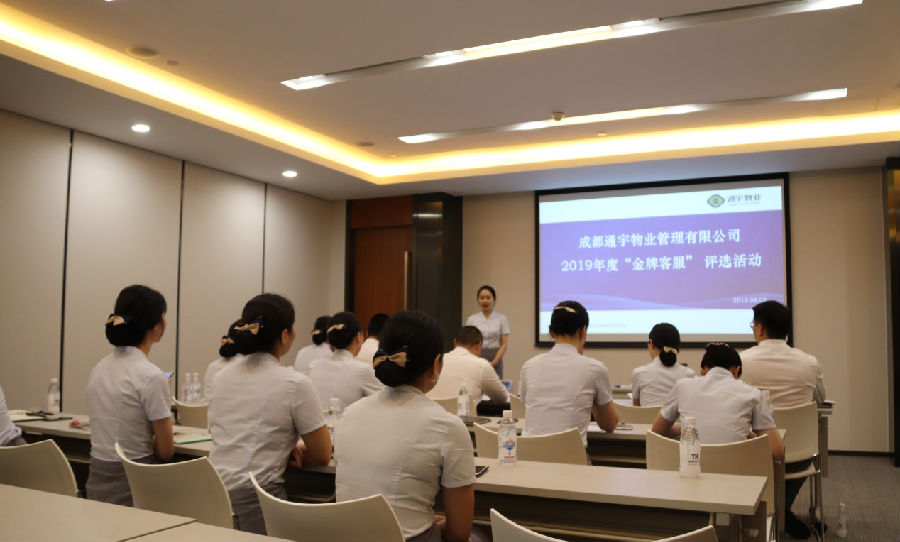為著(zhù)力提升企業(yè)品牌形象,提高對客服務(wù)質(zhì)量和服務(wù)水平,進(jìn)一步激發(fā)員工服務(wù)熱情,挖掘工作中表現優(yōu)異的員工和優(yōu)秀事跡。8月2日,成都通宇物業(yè)管理有限公司組織開(kāi)展了2019年度“金牌客服”評選活動(dòng)。通宇物業(yè)總經(jīng)理孫斌、副總經(jīng)理崔維順、總經(jīng)理助理何黎明等領(lǐng)導出席評選活動(dòng)并擔任評委。