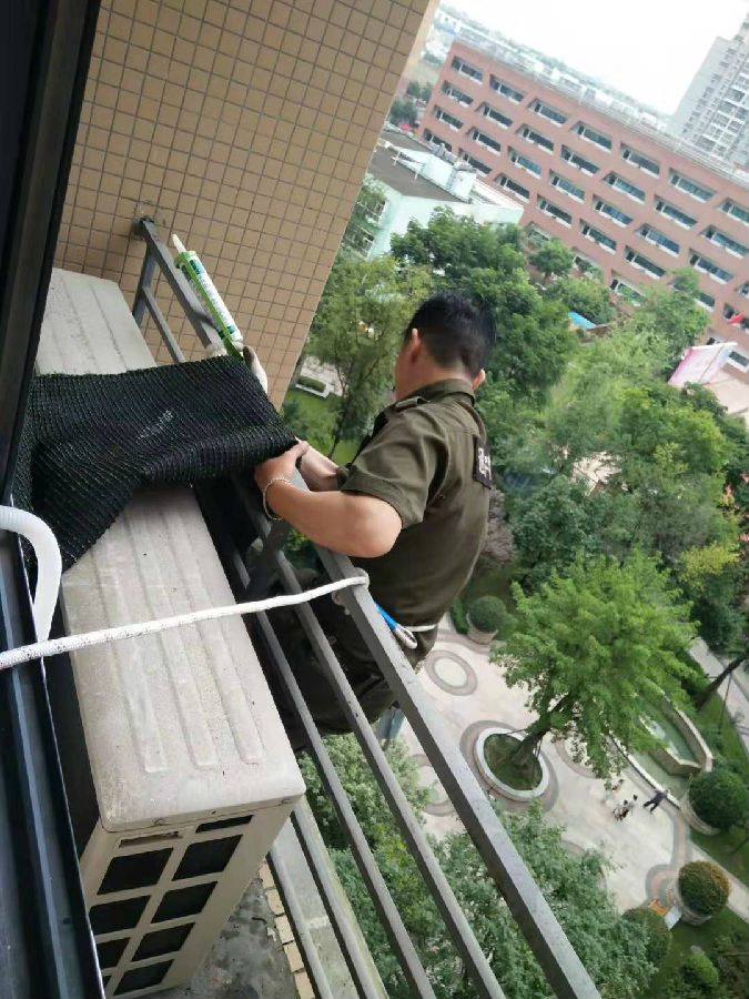 為了幫頂樓業(yè)主解決空調漏水問(wèn)題,袁明陽(yáng)吊著(zhù)繩子高空作業(yè)