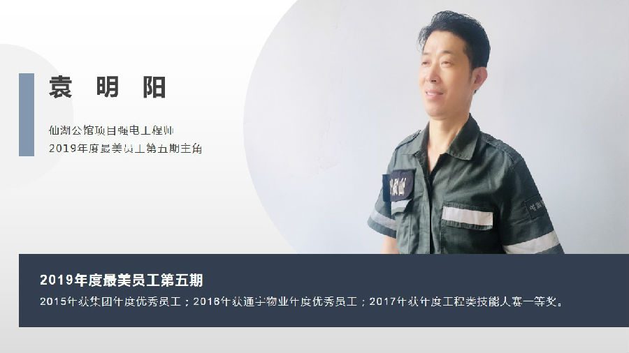 2013年底,袁明陽(yáng)所在的成都當地某房地產(chǎn)公司破產(chǎn),身為項目經(jīng)理的袁明陽(yáng)由人生高光時(shí)刻跌入谷底。2014年,成都通宇物業(yè)管理有限公司受開(kāi)發(fā)商委托,正式接手仙湖公館項目的物業(yè)服務(wù)。就在前期介入階段,袁明陽(yáng)來(lái)了,憑著(zhù)過(guò)硬的強電工程技術(shù),順利進(jìn)入通宇物業(yè),并憑著(zhù)自己的努力,開(kāi)始從人生低谷慢慢往高處走。匆匆五年,通宇物業(yè)早已與袁明陽(yáng)生活融為一體,他說(shuō):“通宇當年把我從谷底拉出來(lái),通宇已是我的家,我愿意一輩子在這里干下去?!?/span>