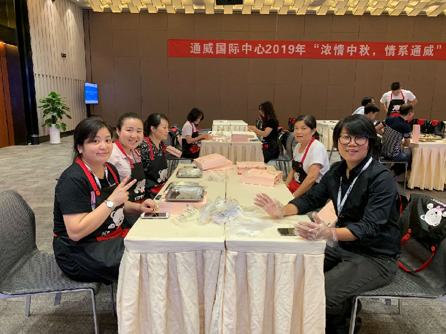 通過(guò)前期宣傳推廣,活動(dòng)成功吸引到了入駐通威國際中心的50多家客戶(hù)的積極參與。在活動(dòng)現場(chǎng),客服中心的工作人員一早就已將制作月餅所需要的面團、餡料等材料準備好。培訓學(xué)校的面點(diǎn)師傅們進(jìn)行專(zhuān)業(yè)講解之后,再由大家開(kāi)始親手體驗。參加活動(dòng)的客戶(hù)朋友們一邊相互探討一邊上手操作,順便聊一聊中秋故事,培訓老師在一旁不時(shí)進(jìn)行指點(diǎn),現場(chǎng)氣氛熱烈。做好的月餅胚再放入烤箱烘烤完成,現場(chǎng)洋溢起濃濃的月餅香氣。