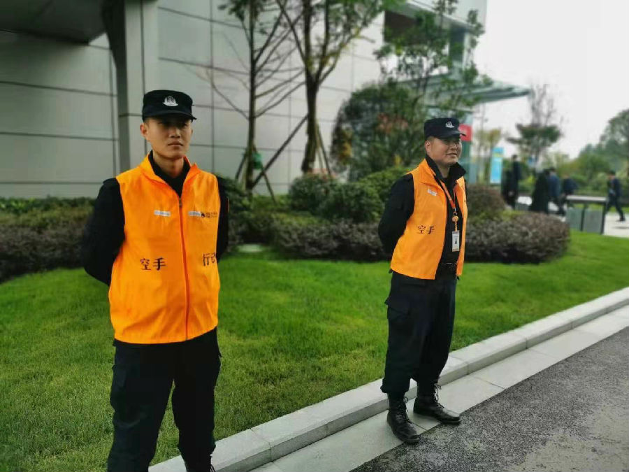 通宇物業(yè)秩序隊員身著(zhù)橙色馬甲,勸導出行安全