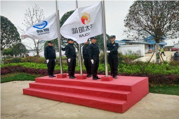通宇物業(yè)自2016年1月1日正式接管通威太陽(yáng)能雙流項目,從一開(kāi)始的3人升旗轉變?yōu)?人升旗,在一定程度上展現了項目建設進(jìn)度不斷加快進(jìn),即將投入生產(chǎn)狀態(tài)。通宇物業(yè)作為項目物業(yè)管理主體,不管是升旗儀式還是常態(tài)化工作開(kāi)展,都在根據項目的實(shí)際情況不斷因地制宜,求新求變。通宇物業(yè)也寄望借此每周一升旗儀式展示更好的精氣神面貌,為項目一周工作開(kāi)展造勢造氣,加油鼓勁!
