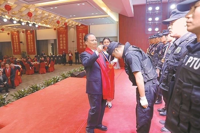 據了解,通威國際中心PTU快速反應小組成立于2014年11月,是通宇物業(yè)根據通威集團對商寫(xiě)及工業(yè)園區現場(chǎng)安防控制及秩序維護“靈活機動(dòng)、快速反應”的整體要求,歷經(jīng)6年打造的高機動(dòng)性突發(fā)事件處置團隊。小組成員均來(lái)自于擁有部隊背景的各項目秩序部,全員配備特制防刺背心、防爆頭盔、防爆盾牌、電擊棍、防爆網(wǎng)等專(zhuān)業(yè)裝備。為保持團隊戰斗力,PTU堅持以“高質(zhì)量體能訓練,高強度訓練意識,絕對的服從意識”為標準,對內實(shí)行優(yōu)勝劣汰的選拔機制,對外以軍事化管理打造團隊風(fēng)貌,在通威集團歷次大型活動(dòng)保障中,該團隊以狼性精神與高度執行力,創(chuàng )造了重大活動(dòng)保障零安全事故的良好記錄。2017年至2019年,劉漢元主席先后為PTU快速反應小組授牌、授勛,他們快速行動(dòng)、快速反應的運行機制得到高度認可,為集團后勤管理樹(shù)立了一道安全的保護屏障。