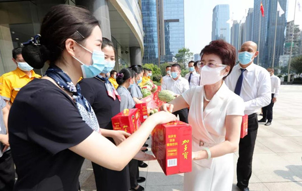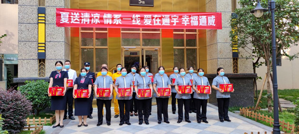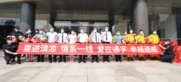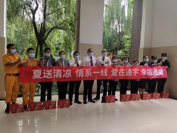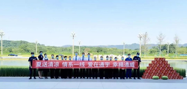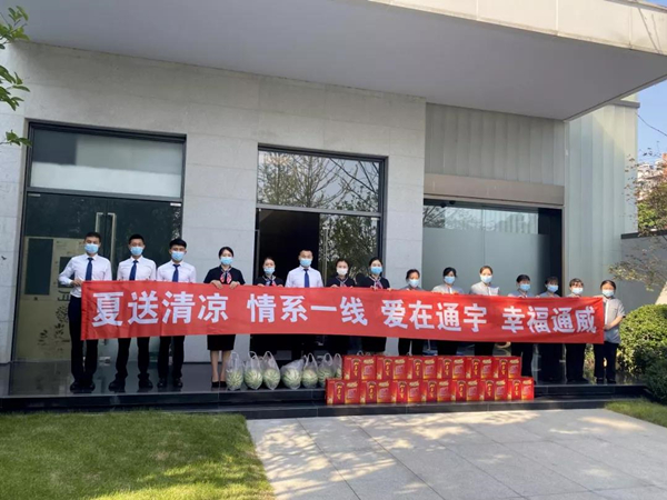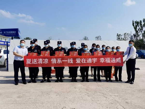 八月以來(lái),全國各地的氣溫節節攀升,多地爆發(fā)橙色高溫預警,此外,全國范圍內呈疫情復發(fā)趨勢,成都也出現多例確診病例。在嚴峻的形勢下,遵照通威集團董事局劉漢元主席的指示,通宇物業(yè)全體員工不懼困難和高溫,始終堅守崗位,奮戰在抗疫一線(xiàn)。在橙色高溫預警下,為關(guān)心一線(xiàn)戰疫員工,8月4日,通威集團禚玉嬌總裁,集團黨委副書(shū)記、副總裁黃其剛帶隊,代表集團董事局劉漢元主席親切慰問(wèn)通威國際中心奮戰在抗疫一線(xiàn)的物業(yè)員工,并送上清涼福利。