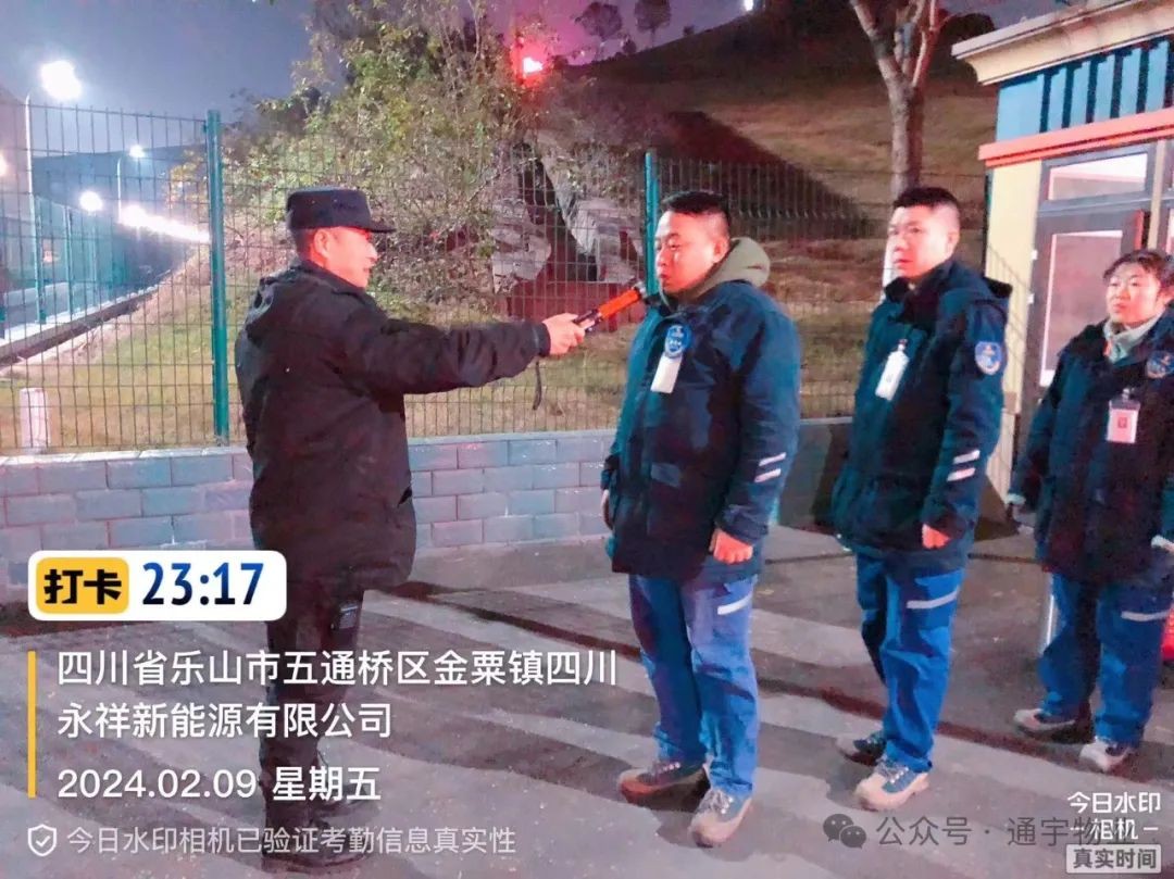 2月9日除夕夜,在永祥樂(lè )山基地,通宇物業(yè)每班配合安環(huán)部對入廠(chǎng)員工進(jìn)行酒精測試,防止員工春節期間酒后上崗,全面確保節日期間基地安全生產(chǎn)保障工作。