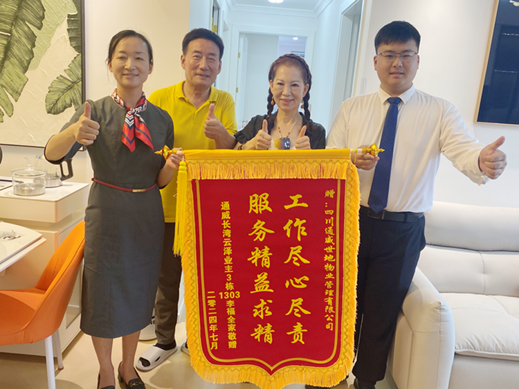 近日,通宇物業(yè)長(cháng)灣云澤項目、西昌樂(lè )薈城項目團隊先后獲得業(yè)主及合作伙伴贈送錦旗,表達了對物業(yè)團隊優(yōu)質(zhì)服務(wù)和專(zhuān)業(yè)精神的高度肯定。