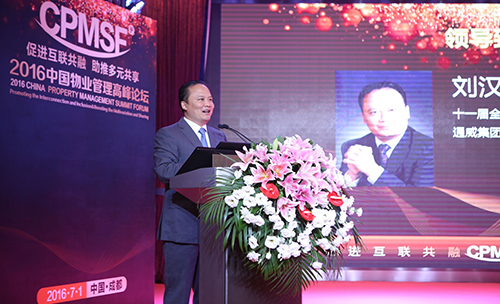 7月1日上午9時(shí)20分,在“2016中國物業(yè)管理高峰論壇”的現場(chǎng),十一屆全國政協(xié)常委、通威集團董事局劉漢元主席代表主辦方通威集團致歡迎辭。