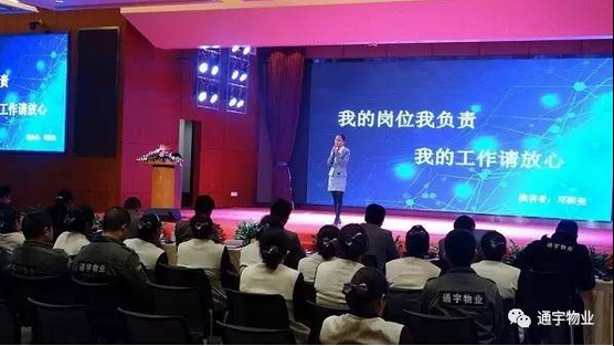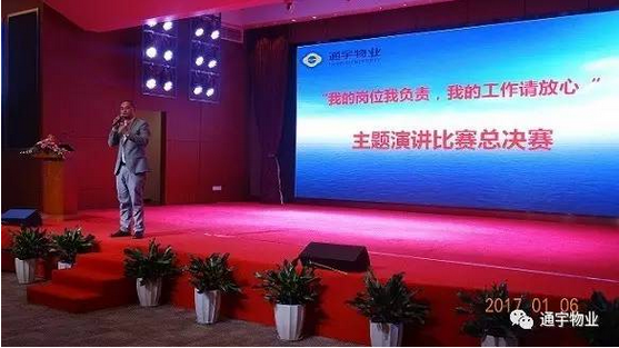 據悉,2016年,通宇物業(yè)即制定了精細化、扁平化、專(zhuān)業(yè)化“三化”管理方針,為全面提升公司整體工作績(jì)效及管理水平,增強員工愛(ài)崗敬業(yè)精神,從年初即在全公司范圍內便開(kāi)展了“我的崗位我負責,我的工作請放心”主題系列活動(dòng),如部門(mén)每日晨會(huì )機制、座談會(huì )、每月品質(zhì)檢查結果排名等均,其中,“我的崗位我負責,我的工作請放心” 主題演講比賽是歷時(shí)最長(cháng)、參與人員最廣的一次活動(dòng)。