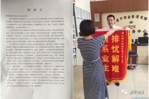 與此同時(shí),7月21日一早,仙湖公館項目物業(yè)服務(wù)中心同樣收到了一份驚喜:來(lái)自小區6棟1單元1001的業(yè)主李鳳奎拿來(lái)一面“排憂(yōu)解難、情系業(yè)主”的錦旗,要送給項目秩序部的王勇。據業(yè)主反映,王勇多次主動(dòng)幫助業(yè)主搬東西、幫助地下室車(chē)窗未關(guān)的車(chē)主關(guān)窗,尤其是6月20日,李鳳奎家中無(wú)人,當時(shí)趕上刮大風(fēng),王勇在小區看到其窗戶(hù)沒(méi)關(guān)、衣服沒(méi)收,打電話(huà)主動(dòng)聯(lián)系業(yè)主,征得業(yè)主同意后在客服處拿備用鑰匙幫業(yè)主關(guān)窗,避免了家中受災,得到了業(yè)主好評。