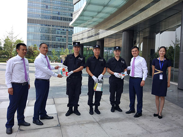 面對入夏以來(lái)的持續高溫,懷著(zhù)對員工的關(guān)愛(ài)之情,為熱烈慶祝中國人民解放軍建軍90周年,8月1日下午,在通威集團副總裁黃其剛的指示下,集團辦公室駢然、通宇物業(yè)總經(jīng)理孫斌、副總經(jīng)理崔維順、總經(jīng)理助理何黎明等公司領(lǐng)導組成三個(gè)慰問(wèn)小組,分別代表十一屆全國政協(xié)常委、通威集團董事局劉漢元主席、通威集團禚玉嬌總裁及通宇物業(yè)管理班子,先后為通威國際中心、通威太陽(yáng)能(成都)項目、通威大廈、仙湖公館4個(gè)物業(yè)管理項目的一線(xiàn)值守員工及退伍軍人、秩序隊員送去夏日清涼與問(wèn)候!通威太陽(yáng)能(合肥)、樂(lè )山永祥多晶硅兩個(gè)異地項目同步開(kāi)展“慶八一 送清涼”慰問(wèn)活動(dòng)。