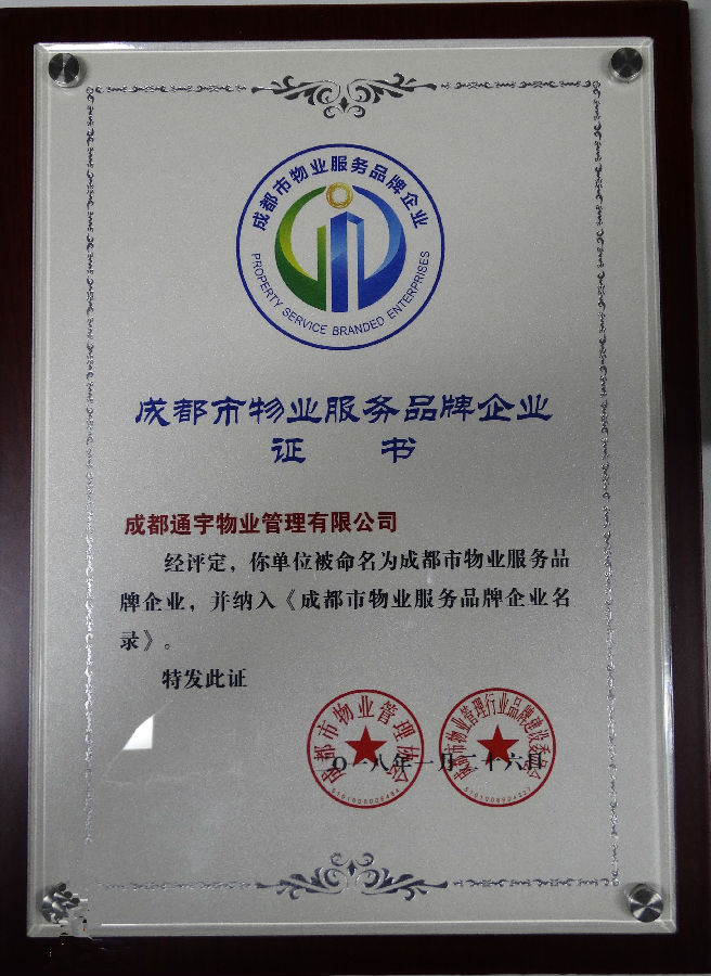 榮獲成都市物業(yè)服務(wù)品牌企業(yè)稱(chēng)號
