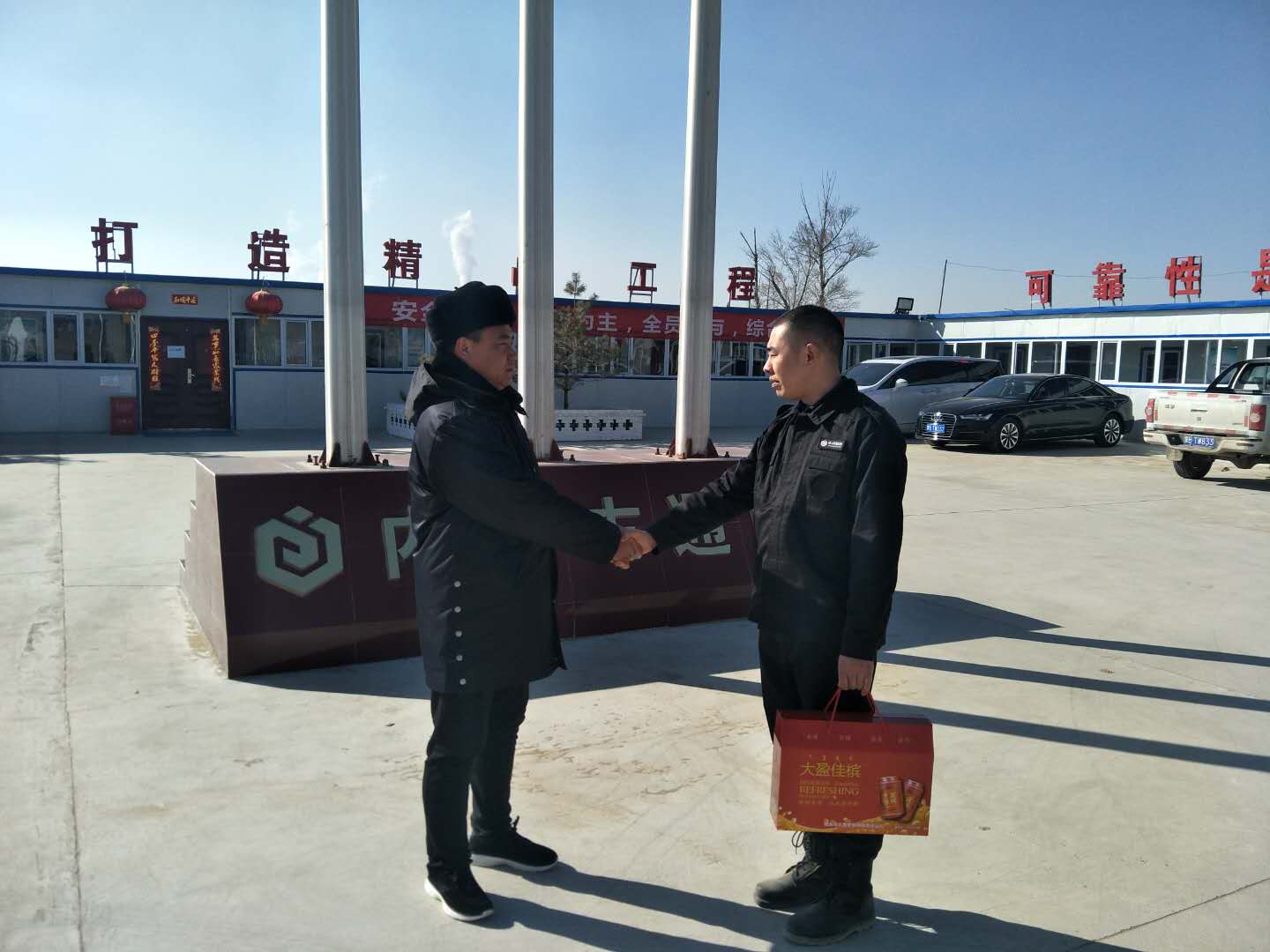 零下10多度的內蒙古,項目負責人黃同山經(jīng)理代表公司對堅守崗位的員工送去祝福和慰問(wèn)品