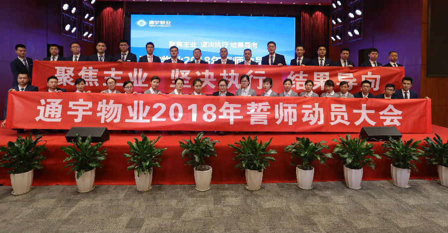 4月11日,通宇物業(yè)2018年誓師動(dòng)員大會(huì )在通威國際中心隆重召開(kāi)。通威集團副總裁黃其剛出席大會(huì ),集團辦公室副主任泉歡,通威傳媒總經(jīng)理甘曉飛等應邀參會(huì ),通宇物業(yè)總經(jīng)理孫斌、副總經(jīng)理崔維順,總經(jīng)理助理何黎明、李俊及成都區域內各項目近200名員工參會(huì )。