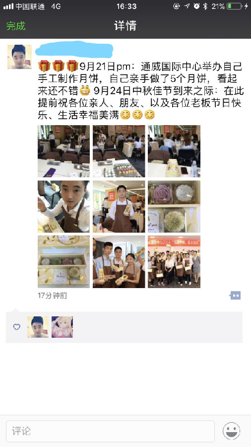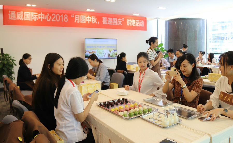 金風(fēng)送爽,丹桂飄香。在中秋佳節即將來(lái)臨之際,為弘揚中華民族傳統文化,表達對客戶(hù)及其家人節日問(wèn)候與關(guān)愛(ài),感謝其一直以來(lái)對通宇物業(yè)、通威國際中心的信賴(lài)和支持;9月21日下午,成都通宇物業(yè)管理有限公司聯(lián)合成都春華勞動(dòng)職業(yè)技能培訓學(xué)校于通威國際中心2F同心家園成功舉辦了“月圓中秋,喜迎國慶”月餅烘焙活動(dòng)。