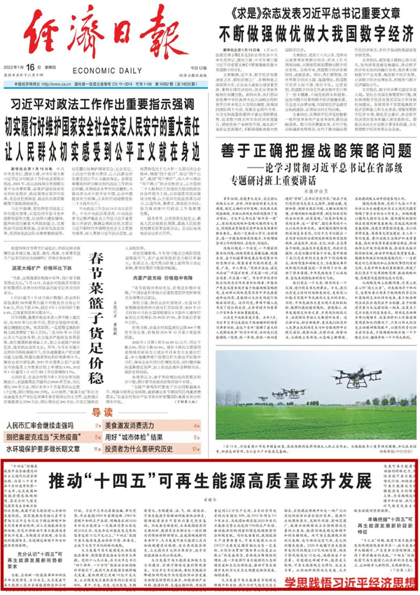 1月16日,國家能源局黨組書(shū)記、局長(cháng)章建華在《經(jīng)濟日報》發(fā)表署名文章《推動(dòng)“十四五”可再生能源高質(zhì)量躍升發(fā)展》。全文如下: