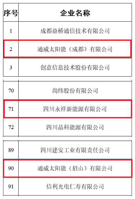 通威旗下三家公司榮列