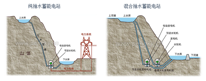 抽水蓄能有兩種方式,一種是純抽水蓄能,國內建的大部分都是這類(lèi),比如廣州抽水蓄能電站、河北豐寧抽水蓄能電站;另一種是混合式抽水蓄能,是在純抽水蓄能的基礎上安裝有普通水輪發(fā)電機組,可以利用上河道的水流發(fā)電。后者既有儲能的作用,又擁有常規水電站的功能。